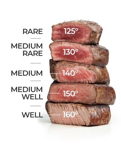 The best way to tell when a steak is done is to use a meat thermometer. Remember that meat will continue to cook up to 10 degrees after removing it from heat.