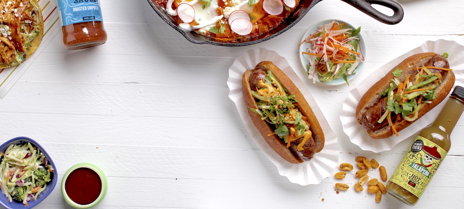 It's described as Mex-Style heat with a serious kick, and we'd say that's accurate. Try Culinary Tours Jalapeno Hot Sauce on eggs, tacos, potatoes, and brats—yes, brats. In fact, it's the secret weapon in our Grilled Bahn Mi Brats.