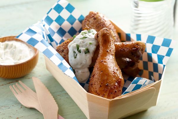 Forget about barbecue sauce. That's what happens when you experience one of these juicy drumsticks dunked into Roasted Garlic Yogurt Everything Sauce.