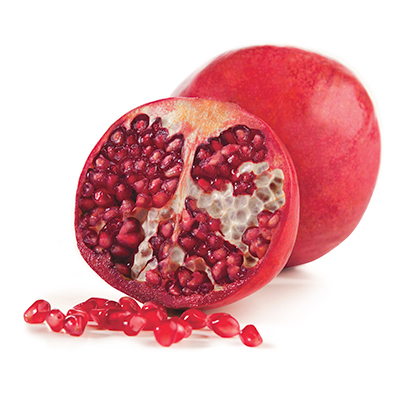Inside a pomegranate you’ll find tiny juice-filled arils that are loaded with vitamin C and antioxidants. The best way to get the edible arils out is to cut the pomegranate in half, then place each half in a bowl of water and gently work out the arils. This also prevents you from getting caught red-handed. You can also buy just the arils in the produce department.