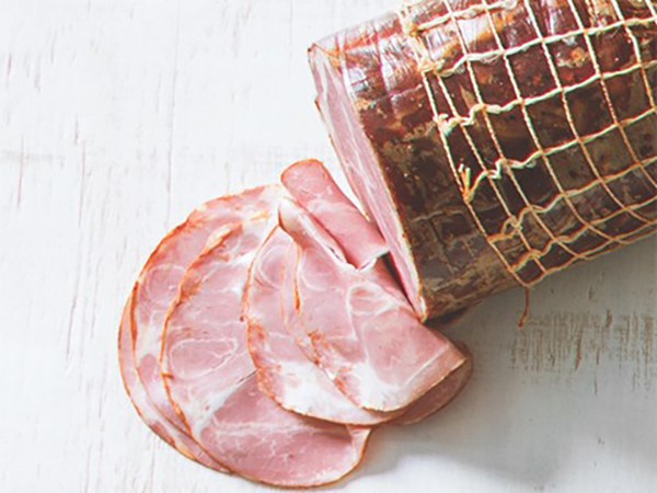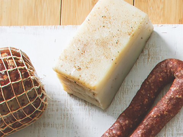 This fatty and lightly spiced cured meat has a creamy texture with a rich flavor and an herbal finish.