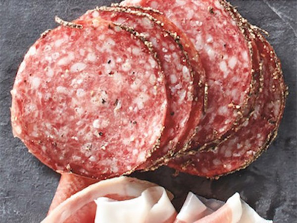 This mildly spiced salami is aged for eight weeks and rolled in freshly cracked peppercorns for a rich and spicy flavor.