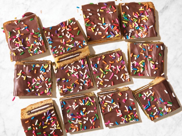 Can we emphasize crazy good? These bars are layered with chocolate chip cookies, cream-filled sandwich cookies and topped with brownies.