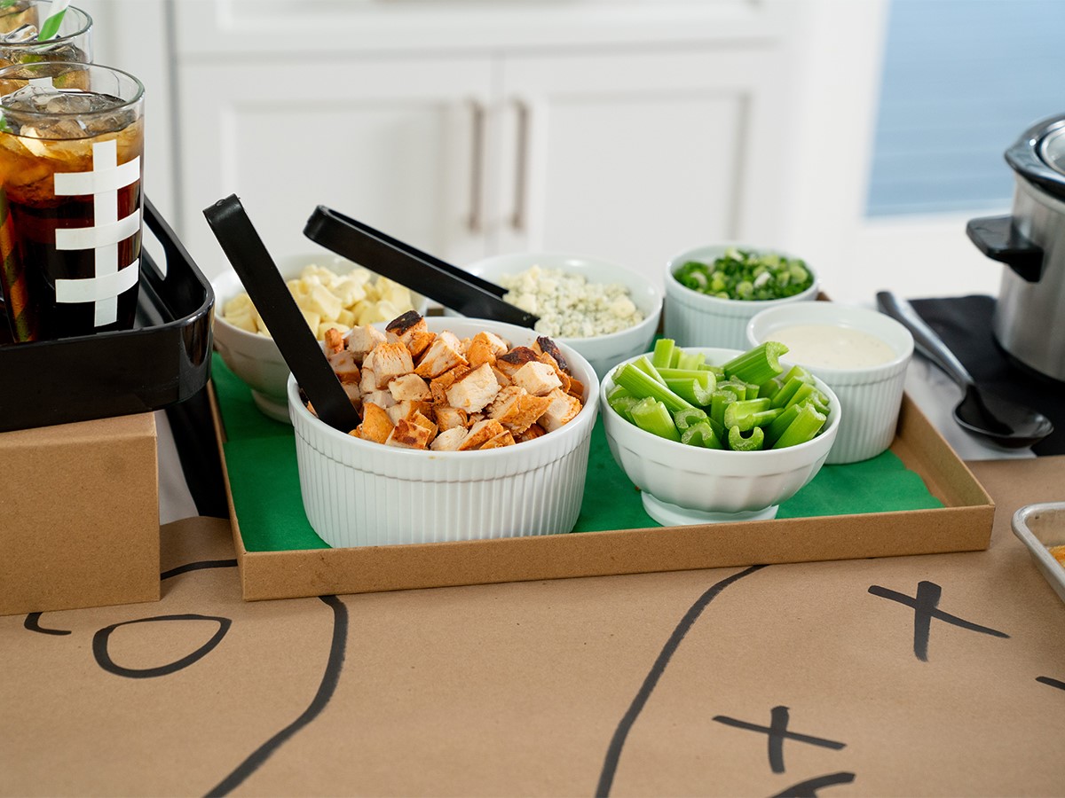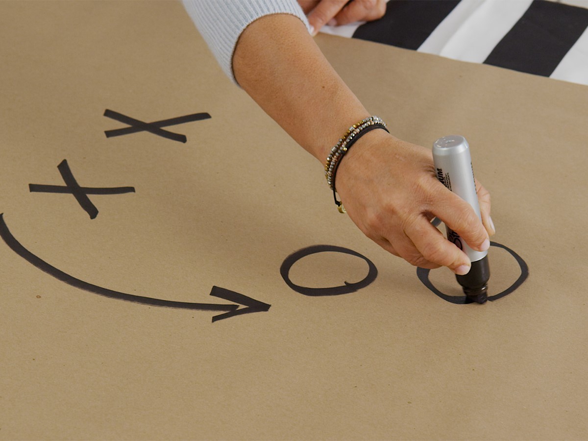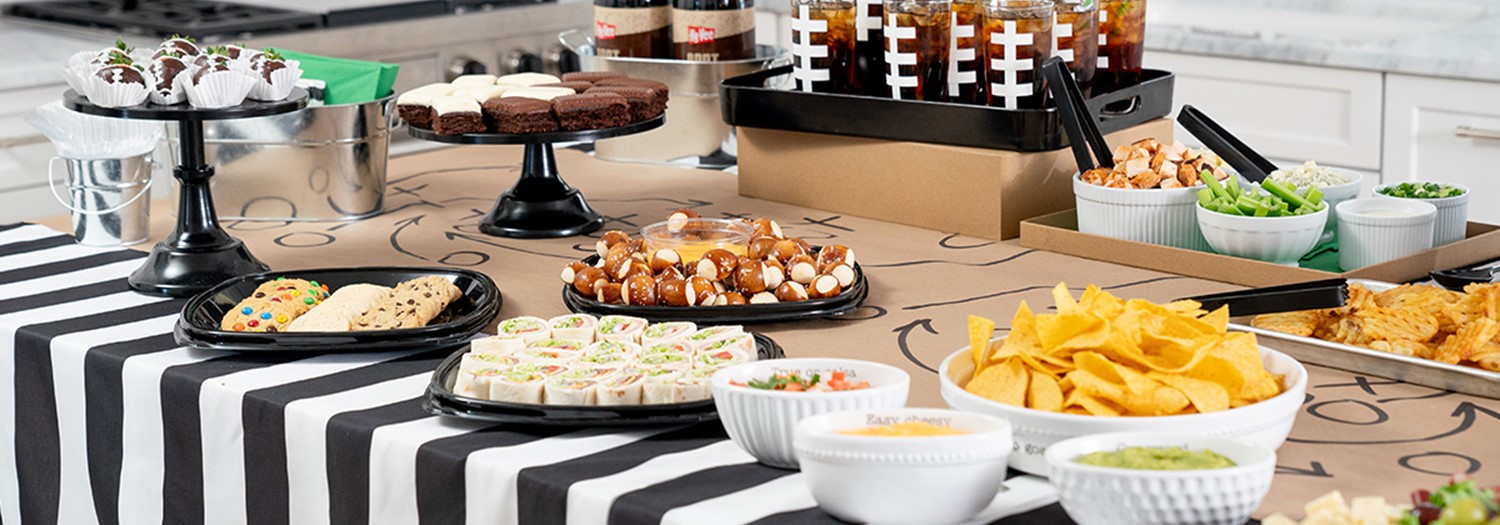 Line the length of your buffet with kraft paper, then use a wide-tip marker to draw football plays with Xs, Os and arrows. This easy decor idea looks great and protects your table or counter from crumbs, drips and spills.