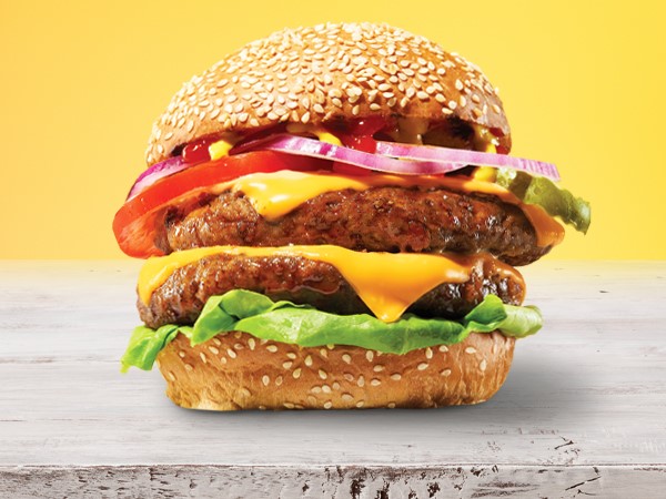 Delicious is a definite understatement when it comes to Hy-Vee's Gourmet Steakhouse Bacon Cheddar Burger, served on a Hy-Vee sesame seed hamburger bun with your choice of toppings. It's just one of many tasty ready-to-grill burgers available in the Hy-Vee Meat Department or on Aisles Online! Some other flavors include Gourmet Steakhouse Burger Mignon, Jalapeno Pepper Jack Burger, and the vegetarian favorite Beyond Burgers!