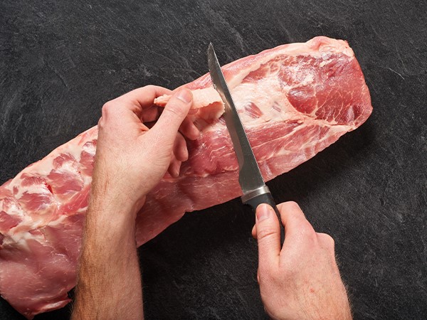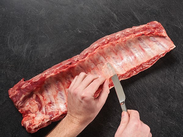 Using a sharp knife, trim any excess fat from the ribs.