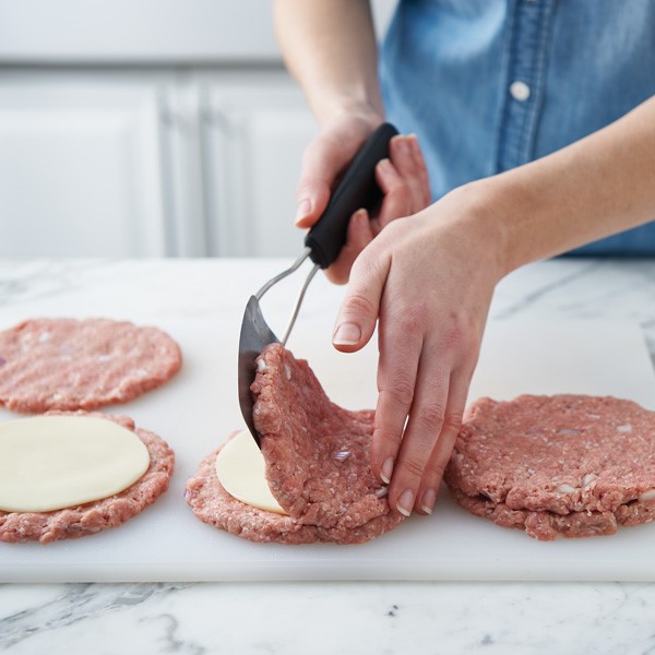 Top cheese-covered patties with remaining patties, then pinch edges together all the way around, ensuring there are no gaps where melted cheese might escape.