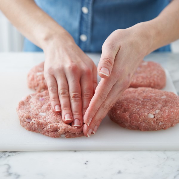 Weigh 4-ounce portions of the meat mixture and gently press and shape into eight ½-inch-thick patties.