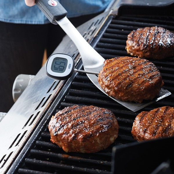 When ready to cook, gently place the patties on the hot grill. Turn carefully with a grill spatula; brush burgers with buffalo sauce. To check doneness, insert an instant-read thermometer into the side of the patty (165 degrees).