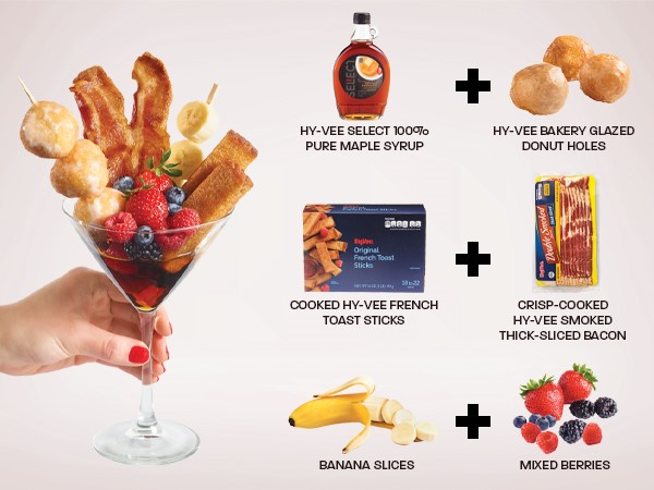 Hear us out on this one: Breakfast Jarcuterie. Everything you love about breakfast—maple syrup, bacon, berries, and French toast—piled high in a martini glass. What are you waiting for?! Get these ingredients now on Aisles Online!