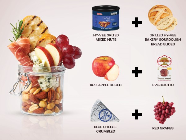 When you think of charcuterie, you probably think about nuts, fruit, cheese, meat, and bread. That's exactly what this idea is... it's just in a jar! Shop everything you need to make this idea come to life on Aisles Online!