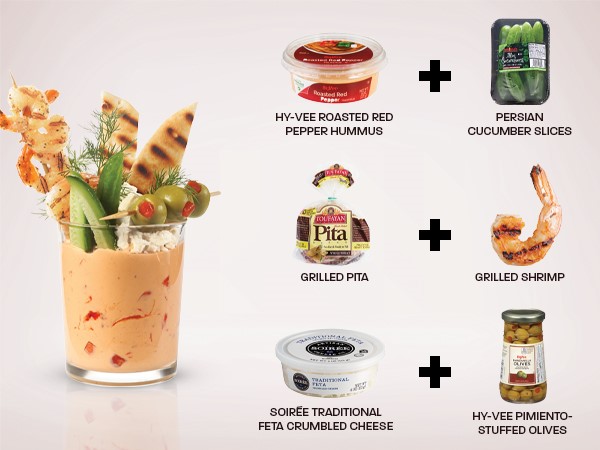 Love hummus and feta? We've got an idea for you: Greek Jarcuterie! Fill glass mason jars with hummus, cucumber, grilled pita, feta cheese, and grilled shrimp. Even better? You can order all these ingredients and supplies on Aisles Online.