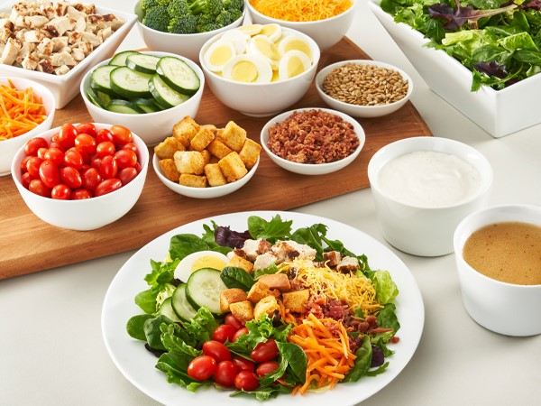 Start with a big bowl of mixed greens, cucumbers, tomatoes, and croutons. Let guests customize with a range of toppings. Our breadsticks are the perfect addition to any salad! Check out our salad bar options.
