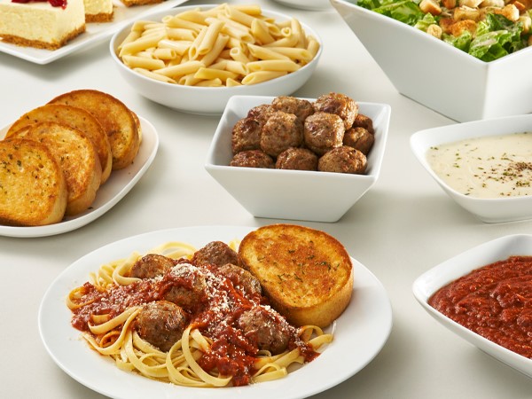 Guests can mix and match pastas, sauces, salads, and breads. And you get to choose between cherry cheesecake or assorted cookies for dessert.