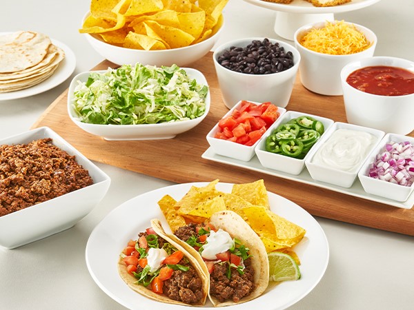 With this taco bar, guests can choose between hard- and soft-shell tacos, beef or chicken, and of course all the classic taco toppings.