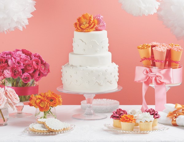 Go wide instead of tall with a spread of traditional wedding cakes in miniature.