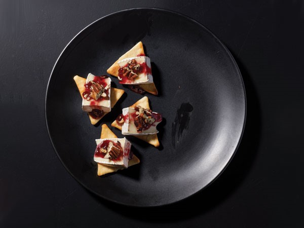 Cherry-Pecan Brie Bites: Top pita crackers with small wedges of Triple Créme Brie cheese. Spoon sour cherry spread over the top and sprinkle with toasted and coarsely chopped Hy-Vee pecans.