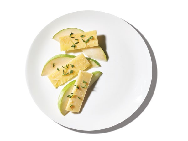 Sharp Cheddar and Pear Wedges: Core an Anjou pear and cut into wedges. Top each wedge with a slice of aged Cheddar cheese. Sprinkle with fresh thyme leaves.