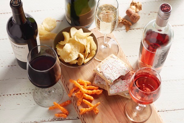 For the nights that are all about good friends, late-night snacks, and feeling no shame in pairing red wine with cheese puffs, here are our favorite wine and junk food pairings.