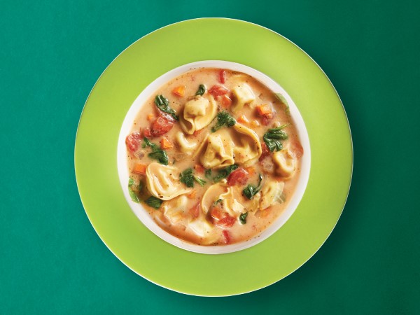 Each bite of this vegetarian tortelloni soup is filled with cheesy, savory goodness.