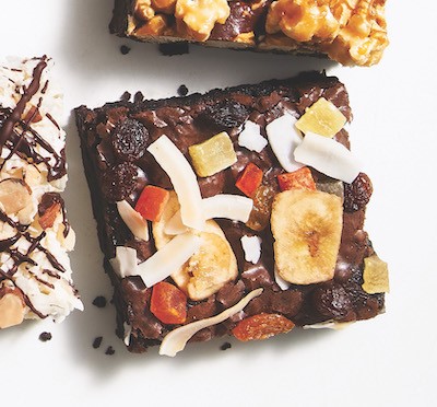 Prepare brownie mix according to package directions. If desired, stir 1/2 teaspoon Hy-Vee ground ginger into batter. Top batter with 1/2 cup Hy-Vee tropical fruit trail mix before baking.