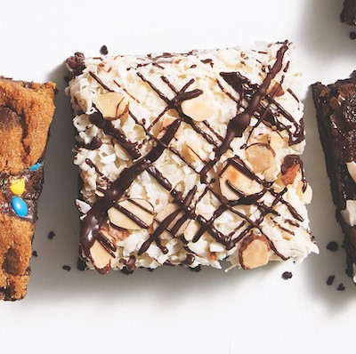 Prepare brownie mix according to package directions. Combine 2 cups Hy-Vee sweetened flake coconut and 3/4 cup Hy-Vee sweetened condensed milk; spread on cooled brownies. Sprinkle with 2 tablespoons Hy-Vee sliced almonds and drizzle with 1/4 cup melted dark chocolate. Let stand until chocolate sets.