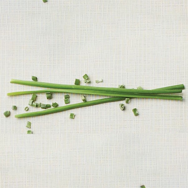 Chives are thin tube-like green shoots that taste similar to garlic and onions—which is why they're so good on meat, seafood, roasted vegetables, soups, and spreads. Make quick work of chopping chives by using kitchen scissors to snip from end to end.