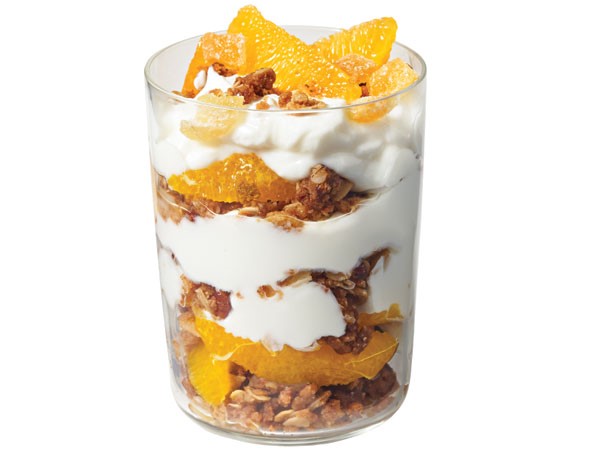 Honey-Orange Parfaits: Layer Hy-Vee vanilla nonfat Greek yogurt with orange sections and Hy-Vee granola.Watermelon