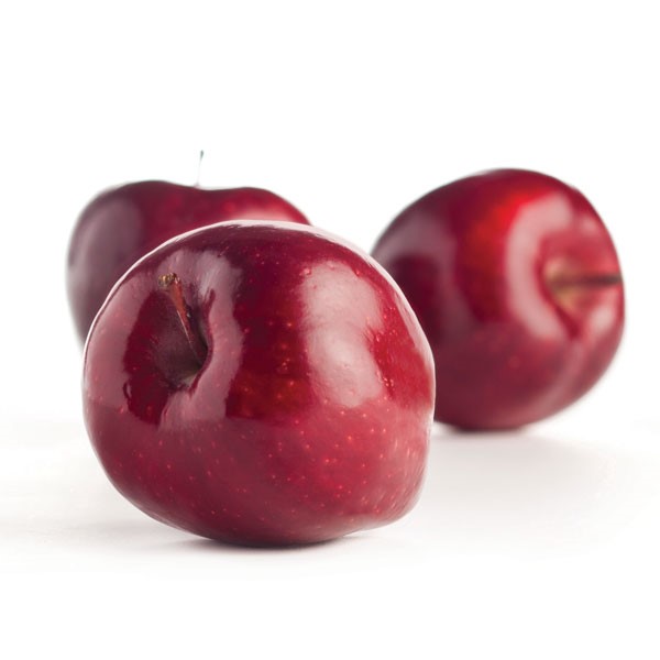 Red Delicious apples can vary from deep, almost maroon, to bright red. These apples have a mild sweetness with hints of acidity. They're great for cooking and baking.