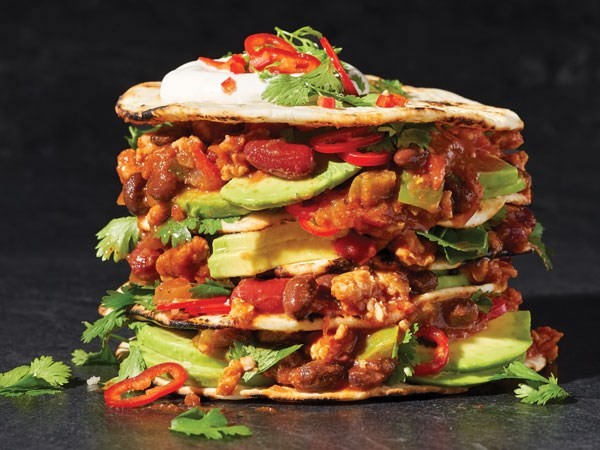 We took leftover chili to the next level with this Enchilada Stack. Layer chili, sliced avocados, cilantro, and sour cream between warmed Hy-Vee flour tortillas.