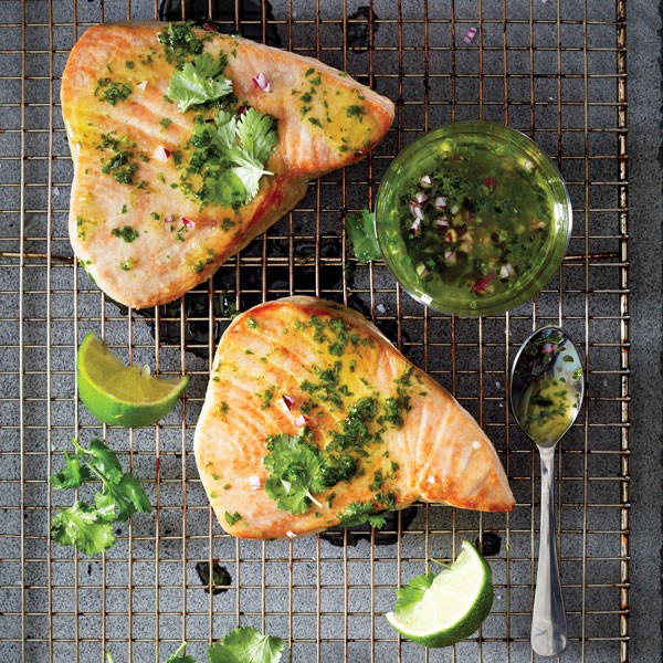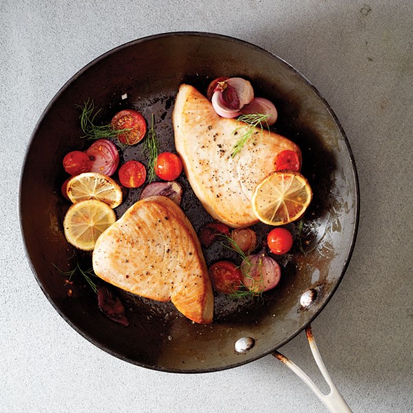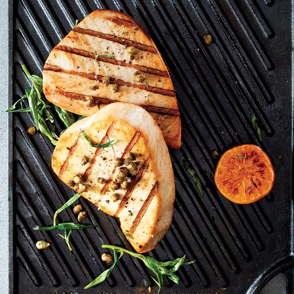 Pan Sear: Season the steaks on both sides with your preferred spices—salt, pepper, and cayenne are a good start. Then, place in a hot skillet with olive oil. Sear quickly to create a brown crust on both sides. Remove from the heat and drizzle with additional olive oil and fresh lemon juice.