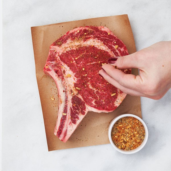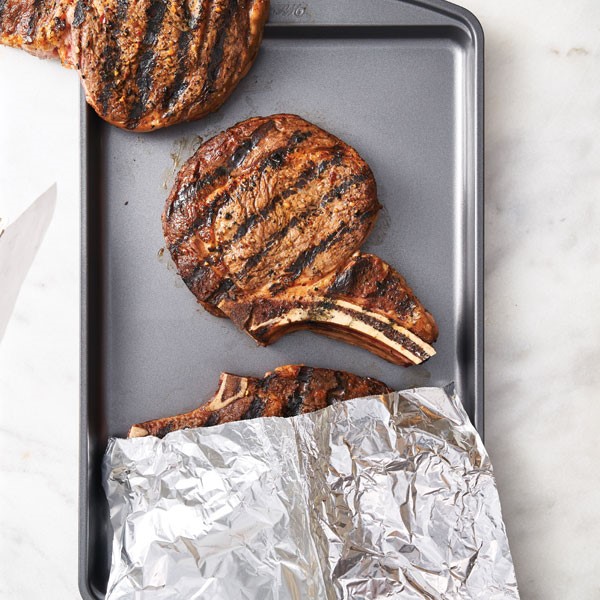 Select a steak that's at least 1-1/4-inch-thick with marbling throughout.