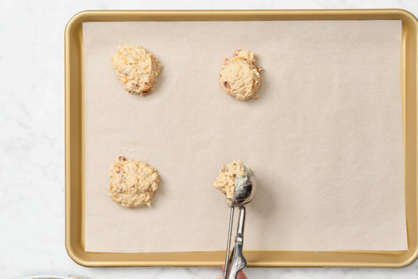 2. Drop about 1/4 cup of dough 2-inches apart onto prepared baking sheet.