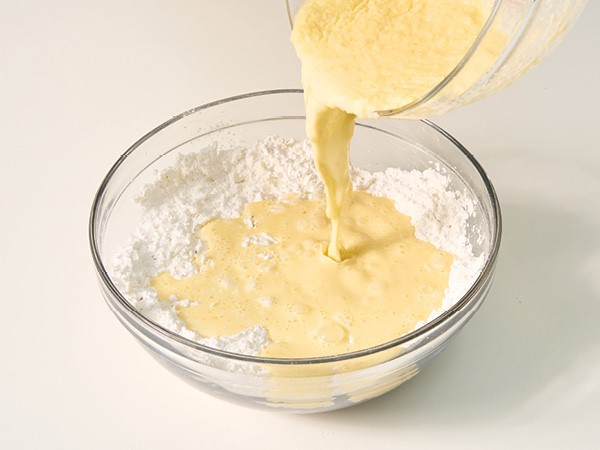 Combine wet ingredients and garlic. Then, add it to the dry cheese mixture and stir to a thick batter.
