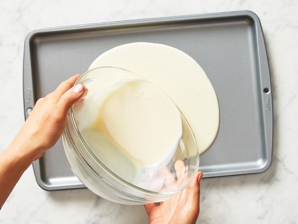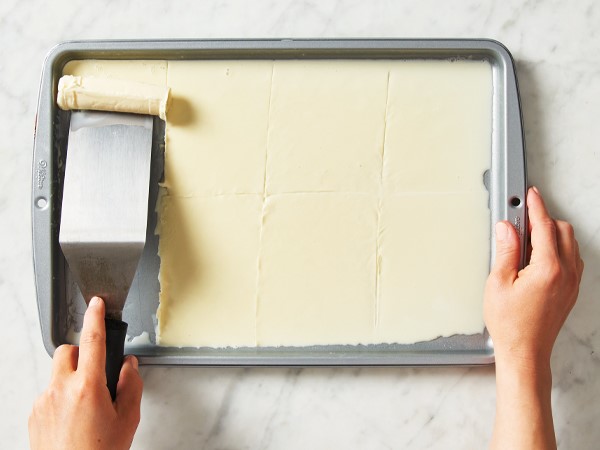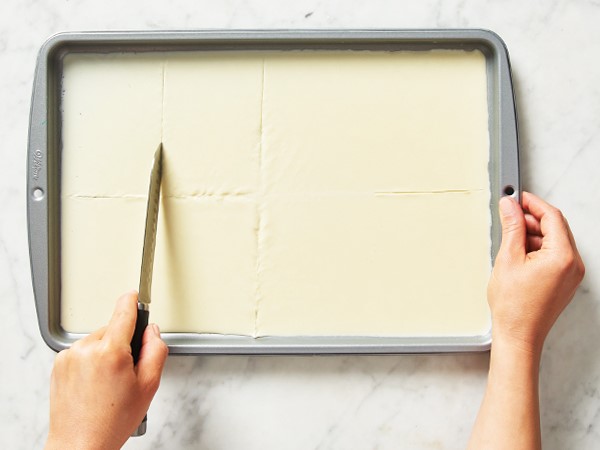 Divide cream mixture between 2 (15x9-inch) rimmed baking pans; spread evenly. Freeze 4 hours or until set.