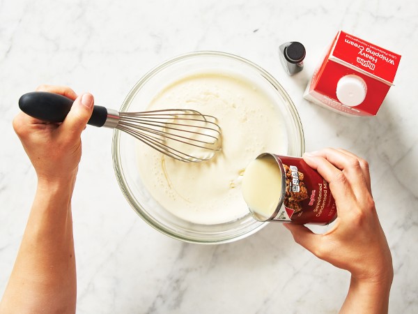 Whisk together 2 cups Hy-Vee heavy whipping cream, 1 (14-oz.) can Hy-Vee sweetened condensed milk, and 1 teaspoon Hy-Vee vanilla extract in a medium bowl.