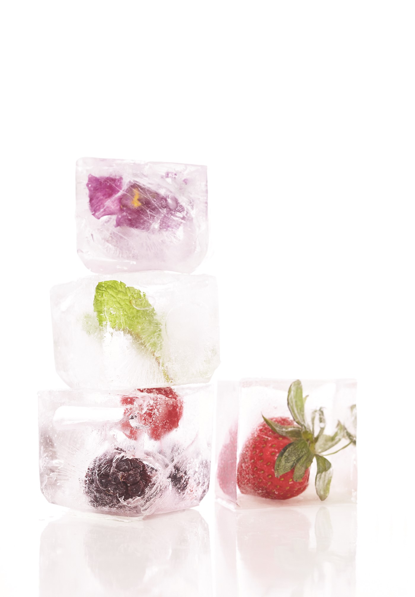 Freeze fresh herbs, berries, and edible flowers in water to make these artful cubes for drinks and cocktails.