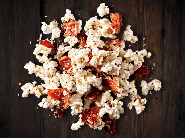 Microwave 94%-fat-free microwave popcorn according to package directions. Drizzle with melted Hy-Vee salted butter. Sprinkle with salt-free Everything bagel seasoning; toss. Toss in 1 (12-oz.) pkg. Hy-Vee center-cut bacon, crisp-cooked and cut up, and 3 tablespoons shredded Parmesan cheese. Serves 8.