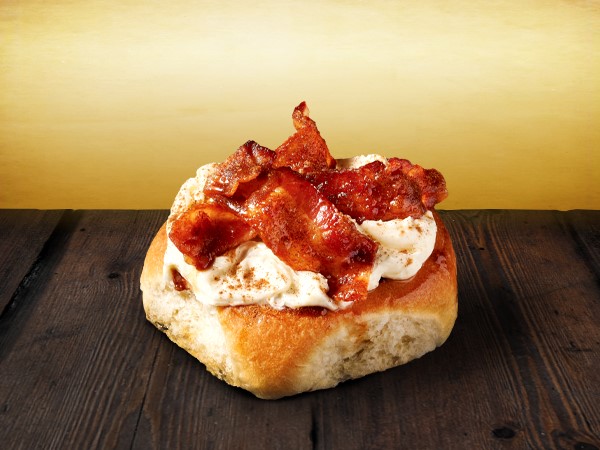 Bake 4 slices Hy-Vee sweet-smoked bacon on a wire rack in rimmed baking pan at 400 degrees for 8 minutes. Pat drippings from bacon. Brush with a mixture of 3 tablespoons packed Hy-Vee light brown sugar, 1 teaspoon Hy-Vee ground cinnamon, and 2 teaspoons water. Bake 9 to 11 minutes or until crisp. Cut bacon; place on top of 8 Hy-Vee Bakery cinnamon rolls. Serves 8.