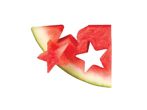 Cut watermelon in half crosswise; slice into 1/2-inch-thick rounds. Use a cookie cutter to stamp out shapes, like stars, from each round. Use the cutouts to garnish drinks or create a stunning fruit platter.