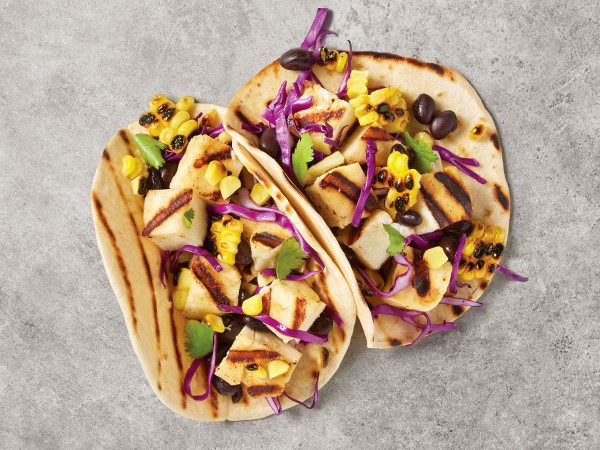 Grill slices of Kryssos Company Halloumi cheese over medium-high heat for 10 minutes, flipping once. Fill tortillas with chopped grilled cheese and desired toppers.