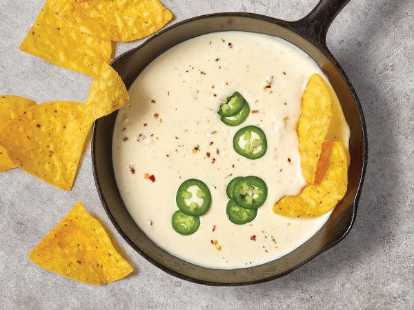 Combine 2 cups Hy-Vee shredded pepper Jack cheese and 1 cup Hy-Vee heavy whipping cream in a 6x2-inch cast iron skillet. Cover with foil. Grill over medium-high heat for 10 minutes, stirring occasionally. Garnish with jalapeno slices and Hy-Vee crushed red pepper; serve with tortilla chips.