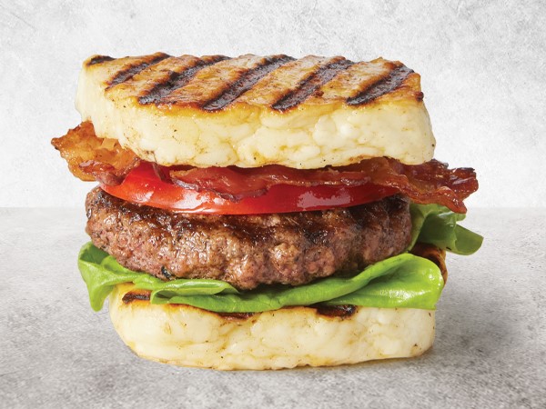 Swap your burger bun for two slices of Carr Valley Cheese bread cheese. Grill cheese slices 5 minutes over medium-high heat, then stack with grilled Hy-Vee Steakhouse burger and desired toppings.
