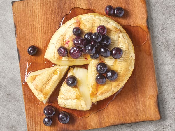 Soak cedar plank for 2 hours. Place 1(8-oz.) wheel President Brie soft-ripened cheese on plank. Grill over medium-high heat for 10 minutes or until softened. Top with blueberries and drizzle with Hy-Vee honey.