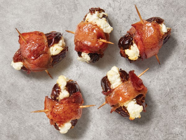 Stuff pitted dates with Soiree original goat cheese. Wrap with bacon. Transfer dates to a cast iron skillet. Grill 15 minutes over medium-high heat or until bacon is crisp.