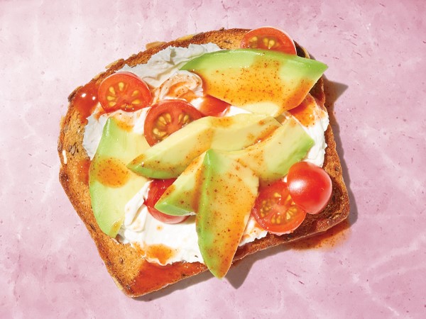 Spread Hy-Vee cream cheese on toasted Hy-Vee 100% multi-grain bread. Top with halved cherry tomatoes and sliced avocado. Drizzle with Tapatio hot sauce.