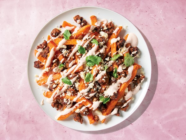 For chipotle crema, combine 1/4 cup Hy-Vee sour cream and 1-1/2 tablespoon Louisiana Brand chipotle hot sauce in a small bowl; set aside. Prepare 1 (19-oz.) bag Hy-Vee sweet potato fries according to package directions. Top with 9-oz. ground pork chorizo, cooked, and 1/4 cup crumbled Cotija cheese. Drizzle with crema. Sprinkle with 2 tablespoons chopped fresh cilantro. Serves 6.