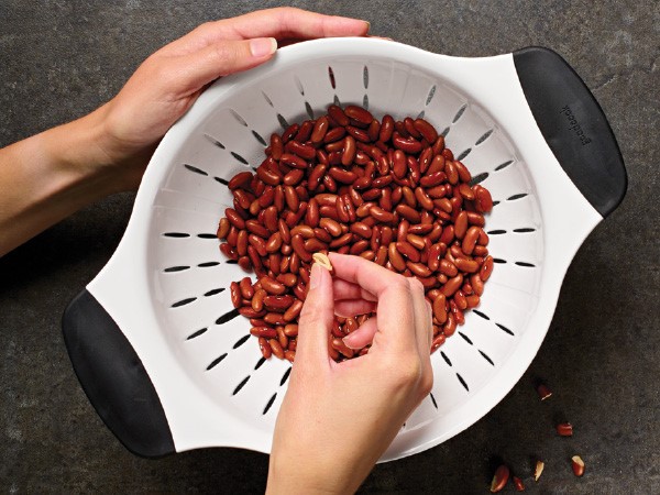 Rinse dried beans in a colander or strainer; remove any bits or bean fragments.