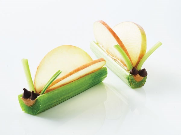 This cute and healthy after school snack will get your kids to eat their fruits and vegetables. Plus, who doesn't love a peanut butter, apple, and celery snack?