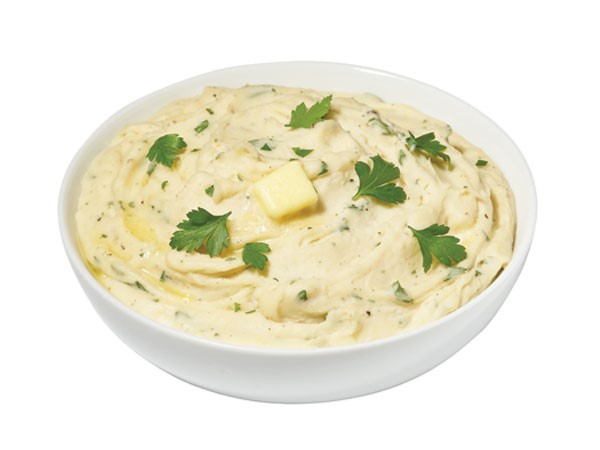 Warm 1 (20-oz.) pkg. refrigerated mashed potatoes. Stir in 1 (1.12-oz.) pkg. Hy-Vee ranch dressing mix, 1 tbsp. chopped fresh Italian parsley. Top with Hy-Vee unsalted butter and fresh parsley. Serves 4.